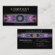 Tarjeta de visita moderna elegante con un fondo sobre todo negro. Entre la plata las líneas coloreadas que los detalles de una mandala púrpura de la flor muestran, proporcionando un estallido agradable del color, haciendo que este contacto carda se destacan de la muchedumbre. Haga clic el personalizar para tener más control sobre opciones de la fuente y el uso del espacio para el texto.