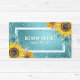 Una carta de negocios floral, caprichosa y femenina, con un purpurina azul verde azulado y fondo gráfico de Relieve metalizado, bordeado por girasoles acuarelas. Añade tu propio nombre y profesión (peluquero, maquillador, cosmetólogo, artista de lash, etc.) a las plantillas delanteras. La información de su empresa puede estar disponible en las plantillas de la parte posterior de la tarjeta.