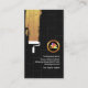 En la parte superior de la tarjeta hay una creación de pintura colorida y luminiscente. Un borde rectangular blanco acentúa este área y aloja el logo dorado, su prestigioso nombre y título de trabajo. Cerca de la base junto a una escalera blanca están tu lema y detalles de contacto. En la pared izquierda hay una racha de pintura dorada procedente de un roller con un muro de ladrillo negro. Cerca de la base están el logo dorado seguido del nombre de la empresa, los detalles de contacto y una opción de lema. Una gran creación para la pintura temática.
