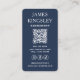 High-end barber business card designed for premium grooming studios and luxury barbers. Navy Blue minimalist background with classic tools creates a powerful, professional first impression.