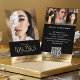 Showcase your brow brand or studio with the Luxury Brow Artist Salon Arch Photo Black Gold Business Card, designed for a refined, modern, and high-end aesthetic. The front features an elegant arch-shaped photo space to display your professional portrait or signature brow work, layered over a subtle background image with soft opacity and a rich black-and-gold color overlay for a luxe, sophisticated look. Easily upload your logo or brow studio name to personalize the design and create a strong, memorable brand presence. The reverse side highlights a stylish three-photo gallery—perfect for showcasing brow transformations, shaping results, lamination, tinting, or microblading work. Each image features a soft cascading ombré effect, creating a cohesive and fashion-forward visual flow. Customize with your contact details and a QR code for quick access to online booking, your website, or social media. Ideal for luxury brow artists, brow specialists, brow technicians, estheticians, and beauty professionals seeking a sleek, upscale business card that leaves a lasting impression. Design by © Moodthology Papery