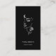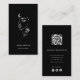 The sophisticated black background with delicate white line art illustration gives this design a modern luxury aesthetic that fits high-end beauty brands. The back of the card includes space for your name, website, contact information, social media icons, and a customizable QR code, allowing clients to quickly access your booking page or portfolio.