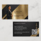 Make a lasting first impression with our Luxury Black & Gold Business Card Template, designed for professionals who demand elegance and sophistication. Featuring a faux black leather background with gold stripe accents, this template exudes regal charm and luxury. The front of the card includes a space for your business portrait, name, and job title, framed with clean, luxurious gold accents. The reverse side continues the faux leather theme, with elegant gold stripes, a neatly organized layout for your contact details, and a placeholder for a QR Code, perfect for linking clients directly to your website or portfolio. Ideal for luxury real estate agents, lawyers, attorneys, financial advisors, boutique business owners, and other high-end professional services, this business card combines timeless elegance with modern functionality. Easily customize all text and images on Zazzle to match your professional brand. Design and layout by ©Moodthology Papery