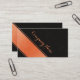A luxury Business Card Design with a decorative orange / salmon color stripe on structured anthracite dark background. Modern customisable Business Card.