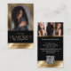 Showcase your wig brand or studio with the Luxury Wig Studio Arch Luxe Photo Black Gold Business Card, designed for a refined, modern, and high-end aesthetic. The front features an elegant arch-shaped photo space to display your professional portrait or signature wig styling work, layered over a subtle background image with soft opacity and a rich black-and-gold color overlay for a luxe, sophisticated look. Easily upload your logo or studio name to personalize the design and create a strong, memorable brand presence. The reverse side highlights a stylish three-photo gallery—perfect for showcasing custom wig designs, hair transformations, styling results, colors, or extensions. Each image features a soft cascading ombré effect, creating a cohesive and fashion-forward visual flow. Customize with your contact details and a QR code for quick access to online booking, your website, or social media. Ideal for wig artists, wig stylists, custom hair designers, salon professionals, and beauty experts seeking a sleek, upscale business card that leaves a lasting impression. Design by © Moodthology Papery
