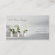 Tres rosas blancos en tres floreros blancos en un estante blanco montado en una pared blanca con las sombras echaron sobre ella. Una tarjeta de visita contemporánea muy elegante. Puede ser utilizado para los empleos y los comercios numerosos.