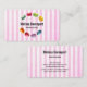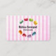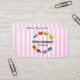 Moda patrón de tarjeta de visita con un diseño de acuarela de dulce y delicioso macarón francés en forma circular. Los macarones están pintados con colores agradables como rosa, azul, verde limón, amarillo soleado, rojo, violeta, etc. Fijado sobre un fondo rayado rosado angustiado.