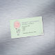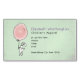 Una tarjeta de visita magnética con un caprichoso conejito blanco sosteniendo un gran globo rosa flotando en el aire. Se coloca sobre un fondo verde claro.