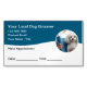 Dog grooming services Appointment reminder magnetic business cards for a Dog Groomer or pet salon created with a cool canine grooming emblem and appointment template incorporated into the business card design for anyone that does mobile grooming or home grooming.