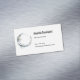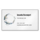 Magnética tarjeta de visita con un ilustracion místico. Luna de media luna azul oscuro con un elegante contorno de círculo delgado y flores blancas a lo largo de sus bordes.