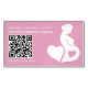 Ponga a disposición de sus clientes embarazadas este hermoso imán de tarjetas de visita que incluye una silueta tierna de mujeres embarazadas con corazones de bonito en el delicado fondo rosado junto a su código QR con el enlace del sitio web. Grandes tarjetas magnéticas, parto natural y servicios de parto.