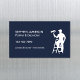 A modern magnetic business card for the painting and decorating industry. With a navy blue background and a silhouette of a painter on steps holding a paint roller, easily customize the white typography with your name and contact details.