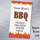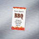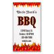 Una plantilla de tarjeta de visita magnética del restaurante personalizado con escritura y texto occidental, BBQ en letras ardientes y arte de llamas rojas en la parte superior e inferior. Personalizar para cambiar los tipos de letra, colores, añadir su propio logotipo y más, incluso guardar su diseño para más adelante.