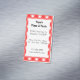 Una plantilla de tarjeta de negocios magnética personalizada para restaurante con letras script y serif amigables en un patrón de cuadros rojos y blancos. Personalízala para cambiar las fuentes, agregar tu propio logotipo y más, incluso guardar tu diseño para más adelante.