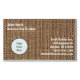 Siete líneas de texto de personalizable y el logotipo de su empresa resaltan estas tarjetas de negocios de estilo yute estilo burlap tejado.