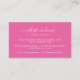 Esta moderna y sencilla tarjeta de visita es perfecta para cualquier profesional. Presenta una fuente contemporánea y elegante de color blanco y rosa oscuro y cursiva sobre un fondo minimalista de color rosa berry; el diseño perfecto para atraer clientes potenciales. Es una gran elección para los artistas excéntricos. ***NOTA DE DISEÑO IMPORTANTE: Para cualquier solicitud de diseño personalizado, como solicitudes de productos coincidentes, cambios de color, cambios de posición o cualquier otra solicitud de cambio, haga clic en el botón "MENSAJE" o envíe un correo electrónico al diseñador directamente a lafemme.art@gmail.com. Incluso puede enviarle un correo electrónico solicitando un diseño completamente personalizado y nuevo.