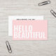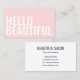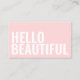 Una tarjeta de visita simple, moderna y minimalista, de color rosa pastel, con texto en negrita en blanco en la parte delantera de la tarjeta: Hola Hermoso. Perfecto para un salón de belleza y/o peluquería, para peluqueros, estilistas, maquilladores, etc.