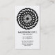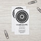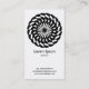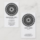 Una elegante plantilla de tarjetas de visita con un atractivo motivo geométrico redondo. Información principal de la empresa en la parte delantera, con nombre y contacto personal en la parte posterior.