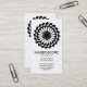 Una elegante plantilla de tarjetas de visita con un atractivo motivo geométrico redondo. Información principal de la empresa en la parte delantera, con nombre y contacto personal en la parte posterior.
