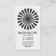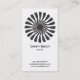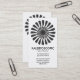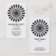 Una elegante plantilla de tarjetas de visita con un atractivo motivo geométrico redondo. Información principal de la empresa en la parte delantera, con nombre y contacto personal en la parte posterior.