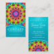 Tarjeta de visita hermosa con una mandala coloreada brillante compleja de la flor como el pedazo de centro y el un montón de espacio para usted información del negocio en el área azul en el frente y la parte posterior de esta tarjeta. Haga clic el personalizar para más opciones como opciones de color de la fuente, añadiendo más texto etc.