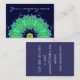 Plantilla de tarjeta de presentación decorativa verde mandala en fondo azul elegante.Diseño personalizable por Alma Wad .Viene 50 por paquete .