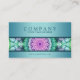 Tarjeta de visita moderna elegante con el pedazo de una mandala del rosa, verde y azul de la flor que muestra en el frente con un fondo azul verde azulado. Haga clic el personalizar para tener más control sobre opciones de la fuente y el uso del espacio del texto.