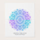 Elegante mandala floral azul y violeta sobre un fondo blanco y cambiante.
