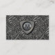 Este diseño único de tarjeta simula un metalizado grabado en relieve y manchado en un patrón floral con elegantes remolinos. El portaobjetos en forma de escudo también parece metalizado quemado. Agregue sus detalles en la parte posterior utilizando la plantilla proporcionada. Busque ID139 para ver todos los productos con este diseño.