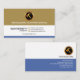 Un diseño en columnas con los colores marrón, blanco y azul. En la capa superior, se encuentra un falso logotipo de martillo dorado que puede utilizar seguido del nombre comercial debajo. La correspondiente capa blanca contiene todos los detalles de la tarjeta. Su prestigioso nombre y cargo están a la izquierda. A lo largo de la línea de demarcación vertical están los detalles de teléfono, correo electrónico y dirección en sus respectivos botones. Al sur de la base hay un eslogan para que publiques tus servicios.