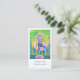 Una buena tarjeta de visita para un instructor de yoga en la que aparece una mujer pacífica en un árbol posando con una gran luna llena de color morado detrás de ella y una flor de loto ilustrada con acuarela.
