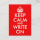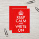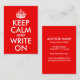Diseño de parodia del personalizable rojo blanco "Keep Calm and Write On" para autores basado en el poster clásico. Puede eliminar la información de contacto en la parte posterior o cambiar el tamaño y estilo de la fuente.
