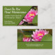 Una sorprendente tarjeta de visita con flores de loto en un estanque. Esta gran tarjeta funcionaría bien para la empresa de paisajes de pontones, mantenimiento y reparación de estanques, o un negocio de mantenimiento de estanques de peces. Fácil de personalizar con la información de su propia empresa.