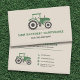 Una tarjeta de visita para actividades de mantenimiento de maquinaria agrícola o agrícola en un fondo beige con un tractor de granja verde y gris de estilo personalizado.
