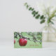 Una hermosa manzana roja colgando de una tarjeta de visita de un árbol.