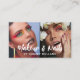 Tarjeta de presentación de artistas de maquillaje fotográfico con Makeup & Nails escrita a través de dos de tus fotos en un audaz guión de caligrafía blanca. Todo el texto es personalizable y por lo tanto apto para cualquier profesión o negocio.