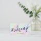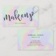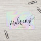 Diseño moderno de tarjetas de visita de maquillaje con textura holográfica falsa colorida y elegante fuente caligráfica.
