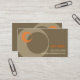 De color caqui, moreno y tarjeta de visita geométrica anaranjada. Los círculos simples la hacen grande.