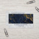 Tarjetas de visita con un elegante fondo de mármol azul marino y dorado. La parte inferior del diseño también tiene un patrón de mármol blanco roto, con el texto personalizado escrito encima.