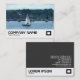 Una plantilla moderna de tarjetas de visita con una atractiva foto o una obra de arte en la parte delantera. Adecuado para una variedad de negocios. Nombre de la empresa en la parte delantera con nombre y datos de contacto en la parte inversa. N.B. La decoración del logotipo del rectángulo proviene de una de las fuentes de imagen de Zazzle y puede conservarse para su decoración o sustituirse si se prefiere.