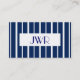 Una tarjeta de visita con monograma elegante con una marina de guerra simple y una tela a rayas blanca. Hay tarjetas de nota, pegatinas y sellos a hacer juego.