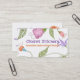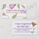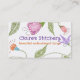 Flores y hojas de esta tarjeta de visita con un estilo de bordado muy lindo para una costurera, artesanía o clase bordada, con tu elección de color de fondo y texto, texto y tipos de letra.
