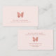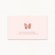 Bonito y elegantes tarjetas de visita con un sencillo y minimalista diseño de logo de mariposa de rosa dorada en un fondo rosa pastel de color rosa. Ideal para diseñadores de joyas, maquilladores, estilistas de cabello, técnicos de uñas, masajistas, spas, salones, boutiques, etc.