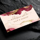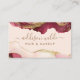 Crea una impresión duradera con esta elegante tarjeta de presentación que presenta un cautivador diseño de mármol en acuarela en rosa y rico burgundy, acentuado con brillo dorado brillante. Las olas abstractas y los detalles metálicos lujosos crean un aspecto sofisticado y artístico, perfecto para mostrar tu creatividad y experiencia como artista de cabello y maquillaje. La fuente de escritura elegante destaca tu nombre y servicios, lo que hace que esta tarjeta sea un recuerdo memorable para posibles clientes.