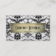 Tarjeta De Visita Mármol del patrón de damasco blanco y negro retro