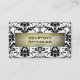 Tarjeta De Visita Mármol del patrón de damasco blanco y negro retro