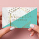 Tarjeta De Negocios Geométrica De Mármol Moderno Verde azulado Y Dorado De Moda A La Moda. Perfecto para maquilladores, peluqueros, cosmetólogos y más!