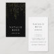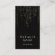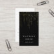 El diseño de una tarjeta de visita vertical, simple y elegante, incluye letras blancas clásicas en un fondo negro rico con cascadas de luces de cuerda de Relieve metalizado de oro falsas en la parte superior. Personalice con dos líneas de texto personalizado en la parte delantera y agregue su información de contacto completa al reverso.