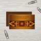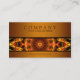Tarjeta de visita moderna elegante con el pedazo de una mandala del amarillo, roja y marrón que muestra en el frente con un fondo marrón. Haga clic el personalizar para tener más control sobre opciones de la fuente y el uso del espacio del texto.