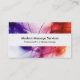 Aquí se presenta una plantilla moderna de tarjetas de visita para servicios de masajes con un bonito diseño abstracto en segundo plano. Creado para un masajista médico, terapeuta físico o masajista profesional.
